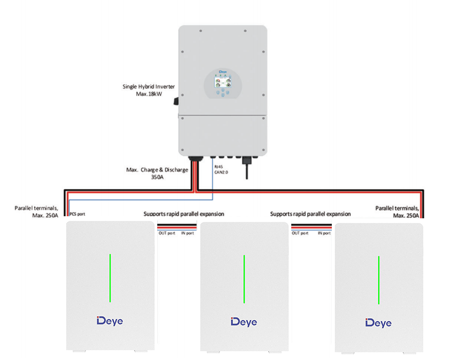 It is suitable for scenarios where the inverter power > 15kW). Schematic diagram of parallel connection of high-power system batteries: